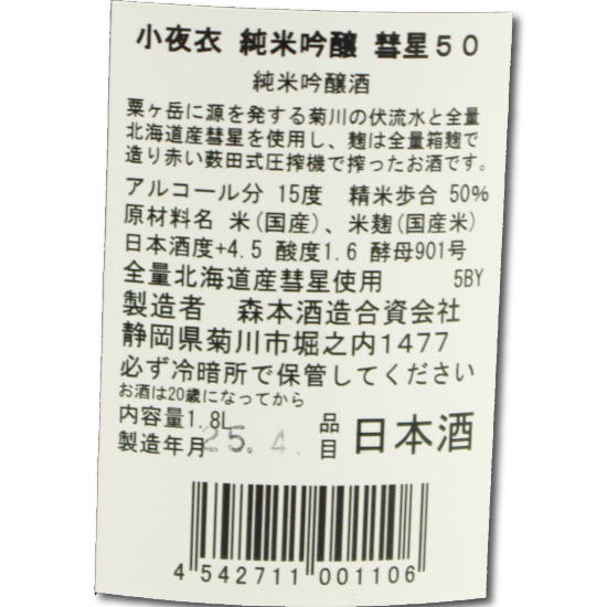 北海道産の「彗星」というお米を使用した火入れの純米吟醸です。すっきりとした口当たりで、きれいな味わいのお酒です。赤いラベルの彗星・・・・
